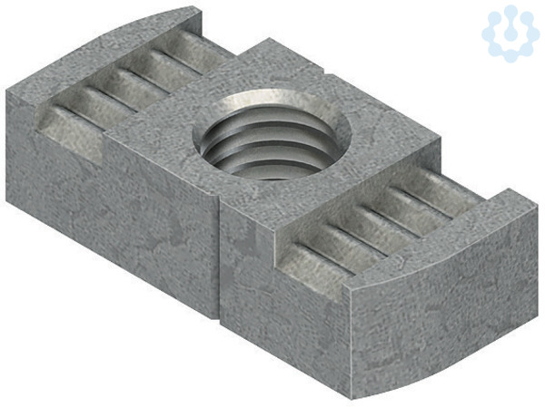 Gleitmutter, ohne Schraube, für C-Ankerschienen, an jeder Stelle mit Befestigungsschraube im Profil einsetzbar.