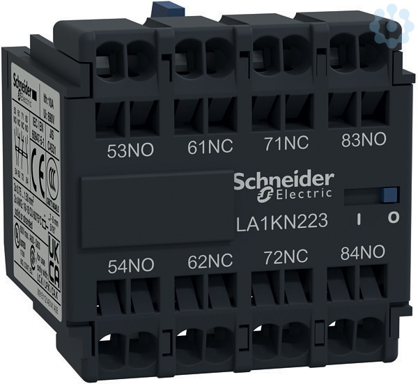 Hilfschalterblock für Schütze TeSys D/F, Federzugklemmen. 2S+2Ö Kontakt, gekapselt. Einfach durch Aufstecken an der Vorderseite zu montieren, sorgt er für hohe Zuverlässigkeit und Langlebigkeit. Multi-Standard zertifiziert (IEC, UL, CSA) und Green Premium konform (RoHs/Reach).