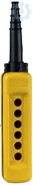 XAC A Leergehäuse. 6 vertikale Bohrungen. Befehlsstellen 6. Lieferumfang Gehäuse, Innenplatine, Kabelknickschutzhülle. Kabelzugentlastung, Spannband für Knickschutzhülle, Ringöse.
