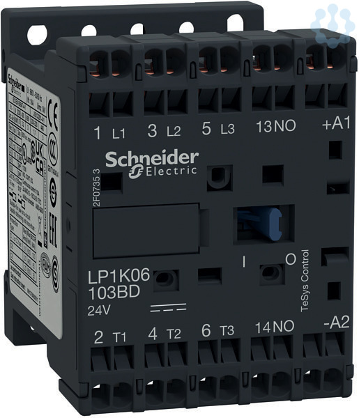 Leistungsschütz TeSys LP1K. 3 polig, 3 Schließer. Zusätzliche Hilfskontakte- 1 Schließer, Bemessungsbetriebsleistung bei AC-3, 400 V 4 kW, Bemessungsbetriebsstrom Ie bei AC-3, 400 V 9 A, Spule 24 V DC. Abmessung (BxHxT) 45x58x57 mm, Gewicht 0,225 kg. Kategorie AC-4, AC-3, AC-1. Einfache Maschinensteuerung in Industrie, Infrastruktur und Gebäudeanwendungen. Einfach zu bedienende Schnittstelle für elektronische Geräte (SPS). Zertifizierungen nach UL, CSA. Produktstandards gem.