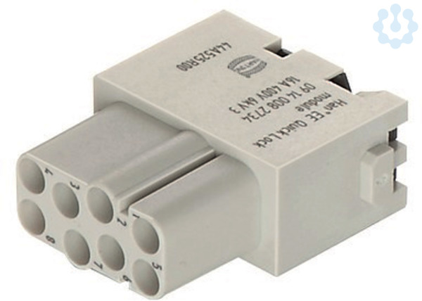 Han EE Modul, Han-Quick Lock Anschluss, Buchse, Kontakte: 8, Leiterquerschnitt: 0,25...1,5 mm², Bemessungsstrom: 16 A, Polycarbonat (PC), RAL 7032 (kieselgrau), Kupferlegierung, versilbert