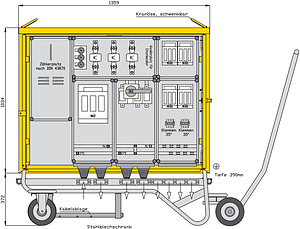 Anschlussverteilerschrank für Conta iner 44kVA mit Zählerplatz, 2 RCDs
