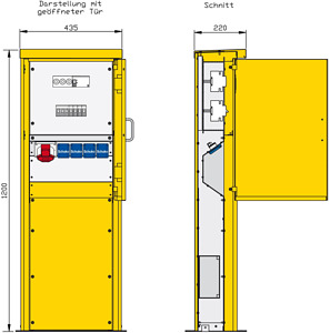 Verteilerschrank 436kVA mit RCD Typ B, 2 LS, 1 CEE-Abgang 32A, einer S