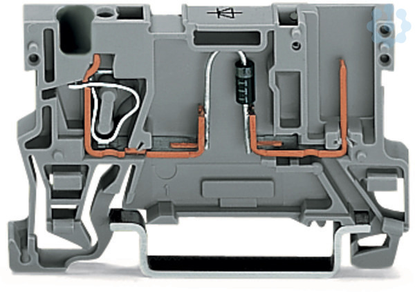 1-Leiter/1-Pin-Bauelement-Basisklemme. mit Diode 1N4007. Anode rechts. für Tragschiene 35 x 15 und 35 x 7,5. 4 mm². CAGE CLAMP®. 4,00 mm². grau