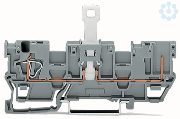 1-Leiter/1-Pin-Trennbasisklemme. mit 2-fach-Querbrückung. für Tragschiene 35 x 15 und 35 x 7,5. 4 mm². CAGE CLAMP®. 4,00 mm². grau