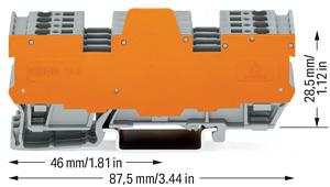 1-Leiter/1-Leiter-Basisklemmenblock. 8-polig. mit 2-Leiter-Klemmen. mit 2-fach-Querbrückung. mit oranger Trennplatte. für Tragschiene 35 x 15 und 35 x 7,5. 4 mm². CAGE CLAMP®. 4,00 mm². grau