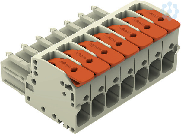 1-Leiter-Federleiste. 100% fehlsteckgeschützt. Hebel. 10 mm². Rastermaß 7,62 mm. 7-polig. 10,00 mm². lichtgrau