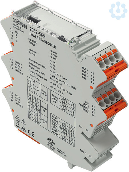1-Phasen-Leistungsmessumformer. Strom- und Spannungseingangssignal. Strom- und Spannungsausgangssignal. Digitalausgang. Konfiguration per Software. Versorgungsspannung DC 24 V