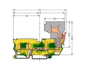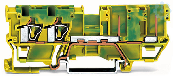2-Leiter/2-Pin-PE-Basisklemme. 4 mm². für Tragschiene 35 x 15 und 35 x 7,5. CAGE CLAMP®. 4,00 mm². grün-gelb