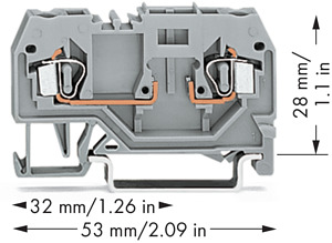 2-Leiter-Basisklemme. für Tragschiene 35 x 15 und 35 x 7,5. 2,5 mm². CAGE CLAMP®. 2,50 mm². grau