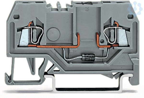 Bauelementklemme. 2 Leiter. mit Diode 1N4007. Anode rechts. für Tragschiene 35 x 15 und 35 x 7,5. 1,5 mm². CAGE CLAMP®. 1,50 mm². grau