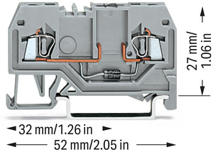 Bauelementklemme. 2 Leiter. mit Diode 1N4007. Anode rechts. für Tragschiene 35 x 15 und 35 x 7,5. 1,5 mm². CAGE CLAMP®. 1,50 mm². grau