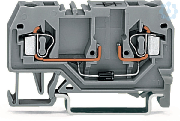 Bauelementklemme. 2 Leiter. mit Diode 1N4007. Anode links. für Tragschiene 35 x 15 und 35 x 7,5. 2,5 mm². CAGE CLAMP®. 2,50 mm². grau