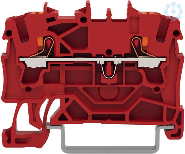 2-Leiter-Durchgangsklemme. mit Drücker. 2,5 mm². mit Prüföffnung. seitliche und mittige Beschriftung. für Tragschiene 35 x 15 und 35 x 7,5. Push-in CAGE CLAMP®. 2,50 mm². rot