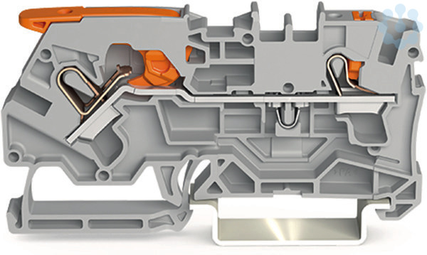 2-Leiter-Durchgangsklemme. mit Hebel und Drücker. 4 mm². mit Prüföffnung. seitliche und mittige Beschriftung. für Tragschiene 35 x 15 und 35 x 7,5. Push-in CAGE CLAMP®. 4,00 mm². grau