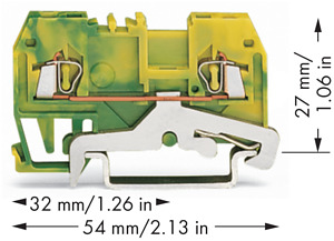 2-Leiter-Schutzleiterklemme. 1,5 mm². mittige Beschriftung. für Tragschiene 35 x 15 und 35 x 7,5. CAGE CLAMP®. 1,50 mm². grün-gelb
