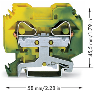 2-Leiter-Schutzleiterklemme. 16 mm². seitliche Beschriftungsaufnahmen. für Tragschiene 35 x 15 und 35 x 7,5. CAGE CLAMP®. 16,00 mm². grün-gelb