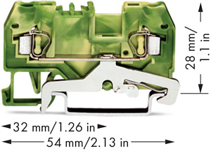 2-Leiter-Schutzleiterklemme. 2,5 mm². für Anwendungen Ex e II geeignet. mittige Beschriftung. für Tragschiene 35 x 15 und 35 x 7,5. CAGE CLAMP®. 2,50 mm². grün-gelb