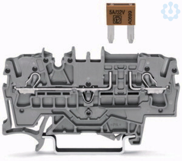 2-Leiter-Sicherungsklemme. für Kfz-Mini-Flachsicherungen. gemäß DIN 7258-3f, ISO 8820-3. mit Prüfmöglichkeit. ohne Defektanzeige. 2,5 mm². Push-in CAGE CLAMP®. 2,50 mm². grau