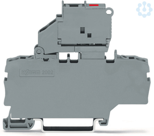 2-Leiter-Sicherungsklemme. mit schwenkbarem Sicherungshalter. mit zusätzlicher Brückung. für G-Sicherungseinsatz 5 x 20 mm. mit Defektanzeige durch LED. 12 - 30 V. für Tragschiene 35 x 15 und 35 x 7,5. 2,5 mm². Push-in CAGE CLAMP®. 2,50 mm². grau