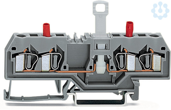 2-Leiter-Trenn- und Messklemme. mit berührungssicheren Prüfbuchsen. für Tragschiene 35 x 15 und 35 x 7,5. 4 mm². CAGE CLAMP®. 4,00 mm². grau