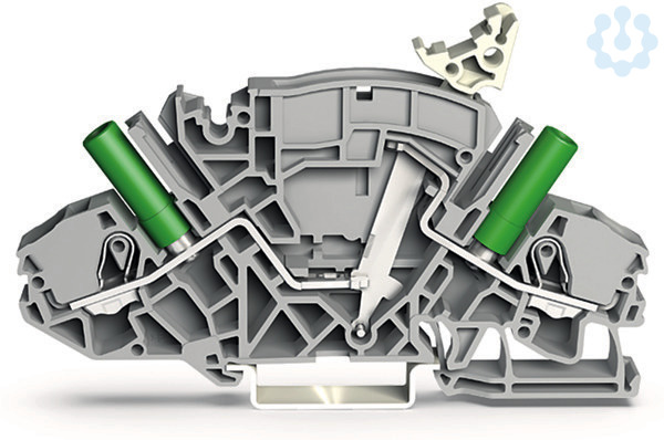 2-Leiter-Trenn- und Messklemme. z. B. für Spannungswandlerschaltungen. mit berührungssicheren Prüfbuchsen. für Prüfstecker Ø 4 mm. für Tragschiene 35 x 15 und 35 x 7,5. 6 mm². Push-in CAGE CLAMP®. 6,00 mm². grau