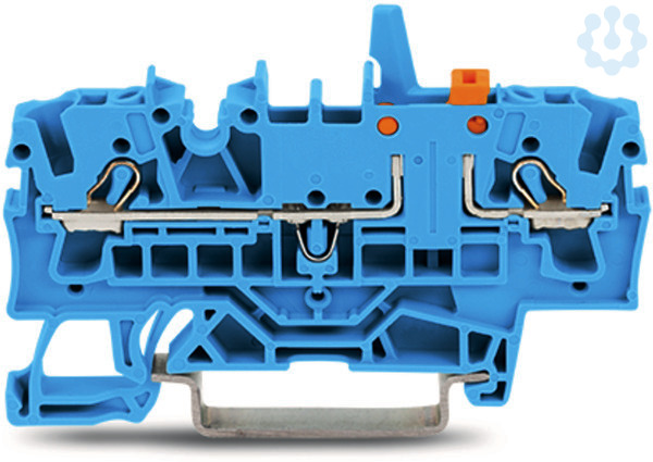 2-Leiter-Trenn- und Messklemme. mit mechanischer Verriegelung. mit Prüfmöglichkeit. Trennmesserhalter orange. für Tragschiene 35 x 15 und 35 x 7,5. 2,5 mm². Push-in CAGE CLAMP®. 2,50 mm². blau