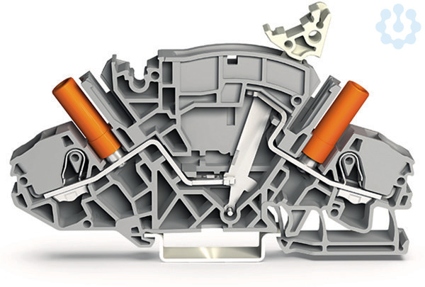 2-Leiter-Trenn- und Messklemme. z. B. für Spannungswandlerschaltungen. mit berührungssicheren Prüfbuchsen. für Prüfstecker Ø 4 mm. für Tragschiene 35 x 15 und 35 x 7,5. 6 mm². Push-in CAGE CLAMP®. 6,00 mm². grau