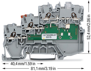 3-Leiter-Aktorenklemme. LED gelb. für NPN-(minus-)schaltende Aktoren. mit PE über Kammbrücker. 1 mm². Push-in CAGE CLAMP®. 1,00 mm². grau