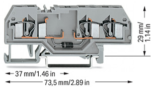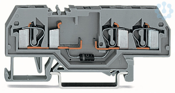 Bauelementklemme. 3 Leiter. mit Diode 1N4007. Anode links. für Tragschiene 35 x 15 und 35 x 7,5. 4 mm². CAGE CLAMP®. 4,00 mm². grau
