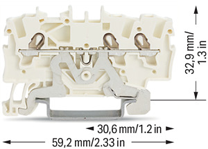 3-Leiter-Schirmleiterklemme. 1,5 mm². seitliche und mittige Beschriftung. für Tragschiene 35 x 15 und 35 x 7,5. Push-in CAGE CLAMP®. 1,50 mm². weiß