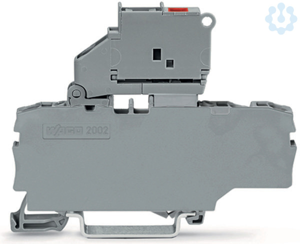 3-Leiter-Sicherungsklemme. mit schwenkbarem Sicherungshalter. mit Abschlussplatte. für G-Sicherungseinsatz 5 x 20 mm. mit Defektanzeige durch LED. 12 - 30 V. für Tragschiene 35 x 15 und 35 x 7,5. 2,5 mm². Push-in CAGE CLAMP®. 2,50 mm². grau