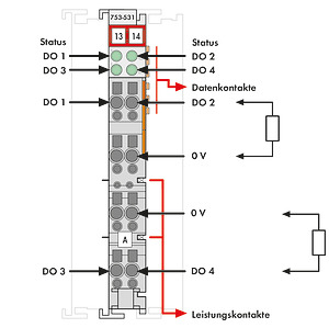 4-Kanal-Digitalausgang. DC 24 V. 0,5 A. Rückwirkungsfrei. 2-Leiter-Anschluss