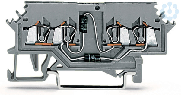 Bauelementklemme. 4 Leiter. für Lampenprüfschaltungen bis 60 V. mit 2 Dioden 1N4007. Anoden rechts. für Tragschiene 35 x 15 und 35 x 7,5. 1,5 mm². CAGE CLAMP®. 1,50 mm². grau