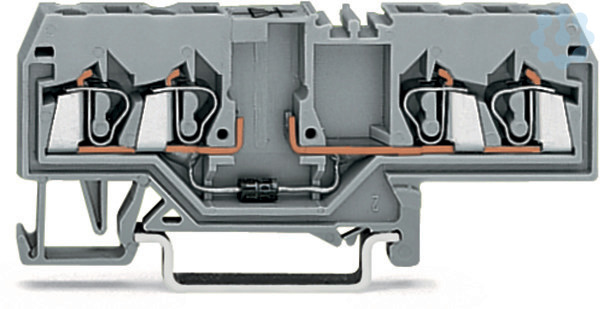 Bauelementklemme. 4 Leiter. mit Diode 1N4007. Anode rechts. für Tragschiene 35 x 15 und 35 x 7,5. 2,5 mm². CAGE CLAMP®. 2,50 mm². grau