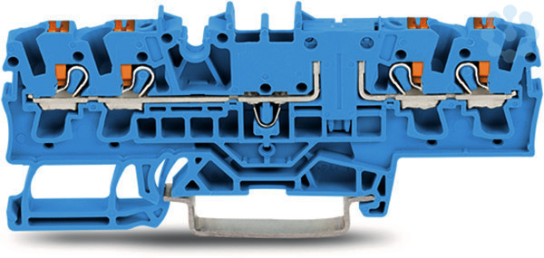 4-Leiter-Durchgangsklemme. mit Drücker. 2,5 mm². mit Prüfmöglichkeit. konturengleich zu 4-Leiter-Trennklemme. seitliche und mittige Beschriftung. für Tragschiene 35 x 15 und 35 x 7,5. Push-in CAGE CLAMP®. 2,50 mm². blau