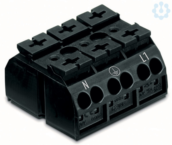 4-Leiter-Geräteanschlussklemme. 3-polig. N-PE-L1. ohne PE-Kontakt. 4 mm². 4,00 mm². schwarz