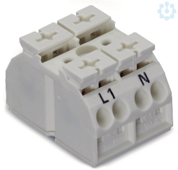 4-Leiter-Geräteanschlussklemme. für Anwendungen Ex e II geeignet. 2-polig. L1-N. ohne PE-Kontakt. 1 Rastfuß pro Pol. 4 mm². 4,00 mm². weiß