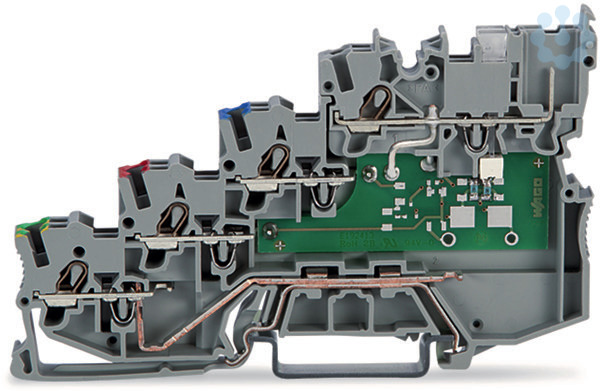 4-Leiter-Initiatorenklemme. LED gelb. für PNP-(plus-)schaltende Initiatoren. mit PE-Anschluss. mit steckbarer Signalebene. 1 mm². Push-in CAGE CLAMP®. 1,00 mm². grau