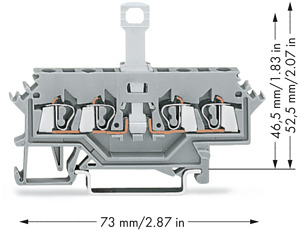 4-Leiter-Trennklemme. für Tragschiene 35 x 15 und 35 x 7,5. 2,5 mm². CAGE CLAMP®. 2,50 mm². grau
