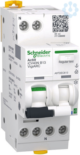 Acti9 iCV40N VigiARC Active - ist ein AFDD (Fehlerlichtbogenschutzeinrichtung/Brandschutzschalter) zur Erkennung von Fehlerlichtbögen in Kombination mit einem FI/LS und ist kommunikationsfähig. 1P+N, 13A Nennstrom und B-Charakteristik. Die Fehlerstromschutzschalter ist ein Typ A-SI mit einer Empfindlichkeit von 30mA und der Erdschlussschutz ist unverzögert. Das Bemessungskurzschlussausschaltvermögen reicht bis zu 6000A bei 230VAC gemäß EN/IEC 61009-2-1 und 10kA bei 230VAC gemäß EN/IEC 60947-2. Dieser AFDD in Kombination mit dem FI/LS schützt vor Kurzschluss, Überlaststrom, elektrischen Schlag durch indirekte Berührung und Brandgefahr durch Fehlerlichtbögen. Dieser Acti9 iC40 ARC Active kommuniziert mit den Gateways EcoStruxure Panel Server Entry, Universal und Advanced. Mit differziertem Voralarm und Ausgelöstmeldung für Überlast, Erdschluss, Netzüberspannung und Messung von Spannung, Strom und Leistung. Die beiden einzigartigen VisiTrip-Anzeigen des Acti9 iArc reduzieren die Interventionszeit, indem sie den