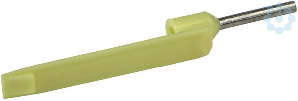 Aderendhülse nach NFC63-023 mit Isolierkragen und Bezeichnungsfahne im Streifengebinde Querschnitt 0,25 mm² - Farbe gelb.