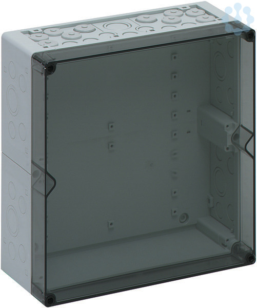 Leergehäuse IP65 Polycarbonat, Kasten glasfaserverstärktes Polycarbonat grau ähnlich RAL 7035, Deckel Polycarbonat transparent, metrische Vorprägungen