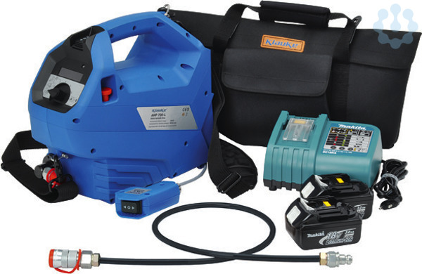 Kompakte und leichte Bauform zum mobilen Einsatz. Hohe Förderleistung. Geeignet zum Betrieb aller einfach wirkenden Klauke Press-, Schneid- und Stanzwerkzeuge mit 700 bar Betriebsdruck. Programm-Umschaltung für Pressen, Schneiden und Lochen. Gehäuse aus stoßfestem, glasfaserverstärktem Polyamid. Großes Display zur Überwachung, Diagnose und Einstellung der Pumpe. Zwei leistungsstarke Lithium-Ionen-Akkus mit hoher Kapazität. Leistungsstarker Motor für maximale Arbeitsgeschwindigkeiten. Automatischer Rücklauf. Manüller Rücklauf bei Bedarf. Manülle Rücklaufunterbrechung mit teach in (MRS+). Fernbedienung mit Kabel zur einfachen Bedienung der Akkupumpe. Integriertes Staufach zur Aufbewahrung der Fernbedienung. Multifunktions-LED zur Wartungsanzeige, Ladezustandsanzeige der Akkus und zur Datenübertragung auf einen PC via USB Adapter. Umweltfreundliches Hydrauliköl, biologisch schnell abbaubar. Alle Hydraulikschläuche mit Kupplungsstecker und Kupplungsmuffe, ölbefüllt. Schultergurt mit Polster für hohen Tragekomfort
