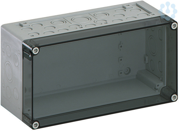 Leergehäuse IP65 Polystyrol, Kasten Polystyrol grau ähnlich RAL 7035, Deckel Polycarbonat transparent, metrische Vorprägungen