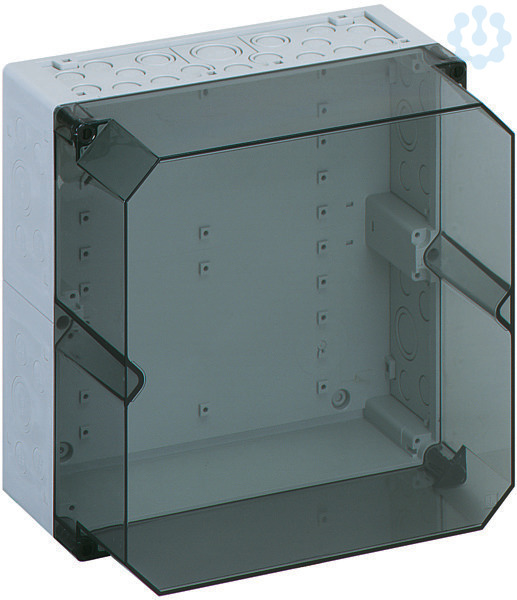 Leergehäuse IP65 Polystyrol, Kasten Polystyrol grau ähnlich RAL 7035, Deckel Polycarbonat transparent, metrische Vorprägungen