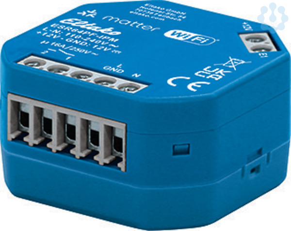 Stromstoß-Schaltrelais mit IP, Matter über Wi-Fi, optional EnOcean, 1 Schließer potenzialfrei 16?A/250?V AC, 230?V-LED-Lampen bis 600?W, 230?V-Glüh- und Halogenlampen 2000?W. REST-API. Stand-by-Verlust nur 0,7 Watt. Für Einbaumontage. 46?x?45 ?mm, 20 mm tief. Die Anschlussklemmen sind Schraubklemmen für Leiterquerschnitte bis 2,5?mm². Vesorgungs- und Steuerspannung 12?V DC oder 110-240?V AC. Modernste Hybrid-Technik vereint die Vorteile verschleißfreier elektronischer Ansteuerung mit der hohen Leistung von Spezialrelais. Mit Steuereingang für einen eventuell davor montierten Steuertaster oder Schalter. Ein Glimmlampenstrom ist nicht zugelassen. Die Wi-Fi-Verbindung nutzt das 2.4 GHz Frequenzband und ermöglicht Over-the-Air-Updates (OTA). Dieser Aktor ist Matter-zertifiziert und kann daher in verschiedene Ökosysteme eingelernt und parallel betrieben werden. Zur Steuerung u?ber Matter wird, je Ökosystem, ein kompatibler Matter-Controller benötigt. Für Apple Home z.B. ein Homepod mini, für Amazon Alexa z.B. e