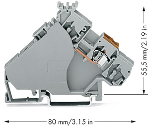 3-Leiter-Aktoreneinspeiseklemme. mit farbig bedruckten Leitereinführungen. 2,5 mm². CAGE CLAMP®. 2,50 mm². grau
