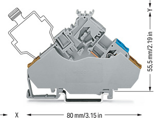 2-Leiter-Aktorenklemme. mit farbig bedruckten Leitereinführungen. 2,5 mm². CAGE CLAMP®. 2,50 mm². grau