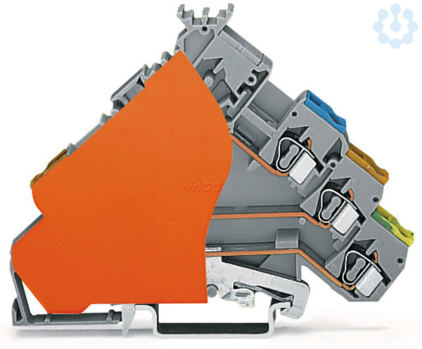 3-Leiter-Aktorenklemme. mit PE-Anschluss. mit farbig bedruckten Leitereinführungen. 2,5 mm². CAGE CLAMP®. 2,50 mm². grau